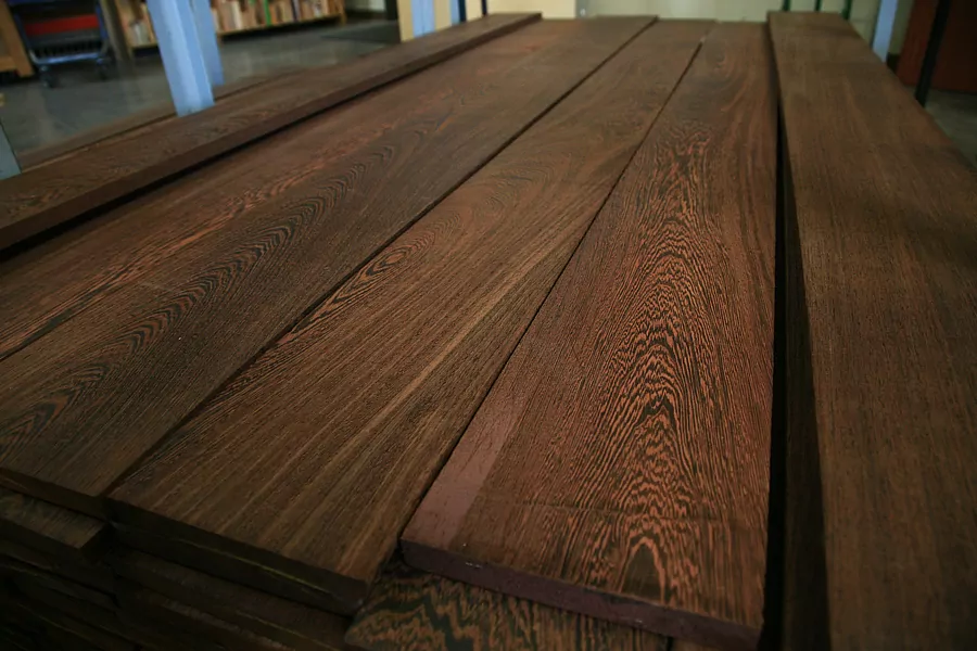 Пиломатериалы из венге отличаются большим весом и твердостью. Не теряют своей геометрии при негативном воздействии окружающей среды. Обрабатываются легко, а вот полируются с трудом. Устойчивы к механическим и динамическим нагрузкам, не боятся ударов и падения острых предметов.