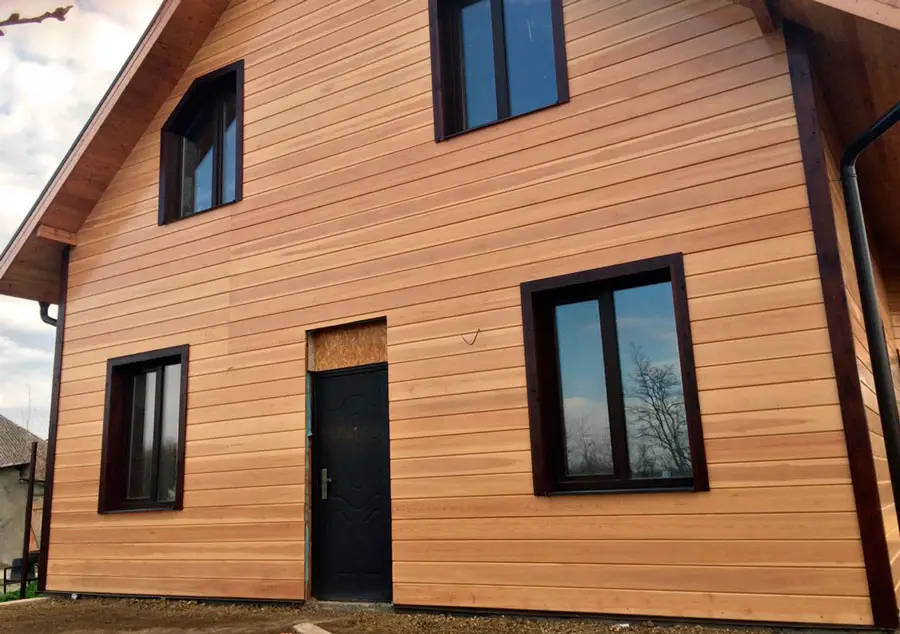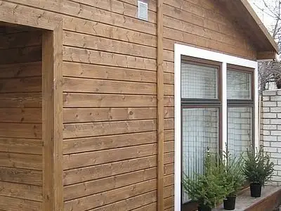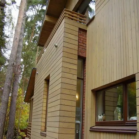 Уникальными прочностными характеристиками обладает имитация бруса из лиственницы. Для изготовления материала используют отборное сырье, лиственницу тоже подвергают дополнительной камерной сушке. Такая обшивка способна выдержать экстремально высокую влажность: под воздействием воды дерево будет становиться еще прочнее, ей вообще не страшны микроорганизмы, грибки и вредители. Плотное долговечное дерево смотрится эстетично, имеет насыщенный холодный оттенок.