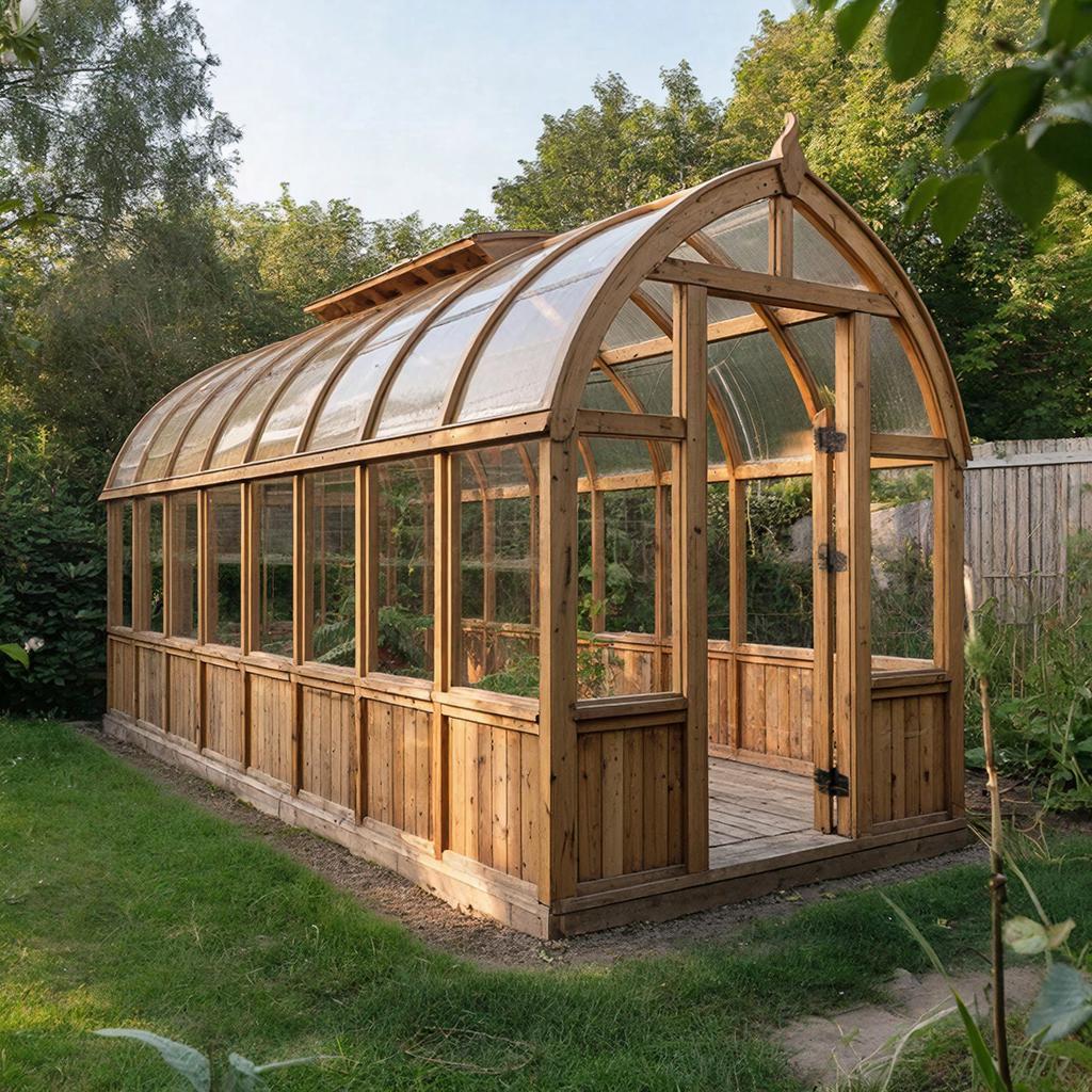 Теплица не должна быть чужеродным промышленным объектом на вашем участке. Деревянная теплица органично вписывается в ландшафт, дополняя дом из бруса, деревянную беседку или просто зеленый сад. Она выглядит уютно, солидно и по-настоящему «домашне».