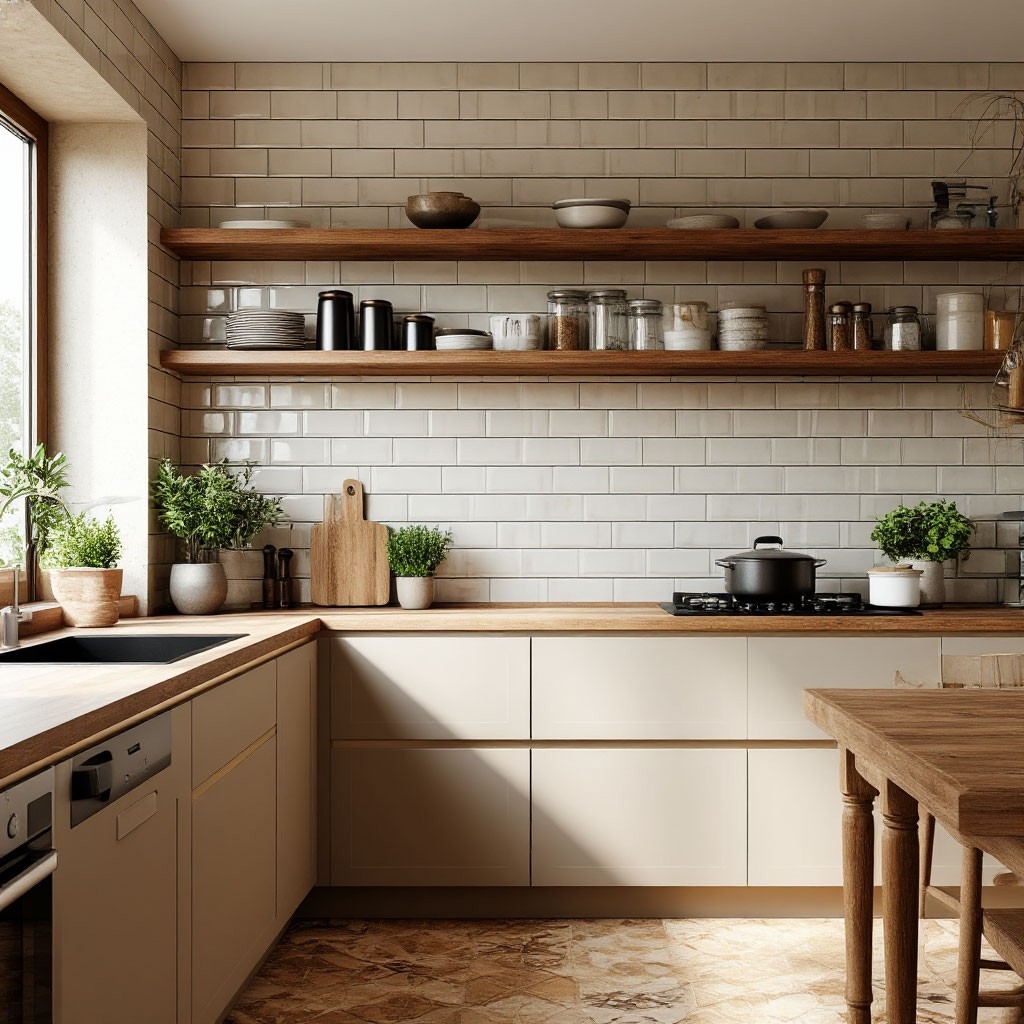 Некоторые минусы тоже есть. Плитка — холодный и жесткий материал. Стоять на таком полу долгое время может быть утомительно, а падение посуды почти всегда фатально. Укладка требует навыков, специального инструмента и времени. Ошибки в монтаже приводят к неровностям, кривым швам. Межплиточные швы — слабое место. Они могут темнеть, накапливать грязь и требуют использования качественных влагостойких затирок. Фартук над рабочей зоной — беспроигрышный вариант, где раскрываются все сильные стороны материала.