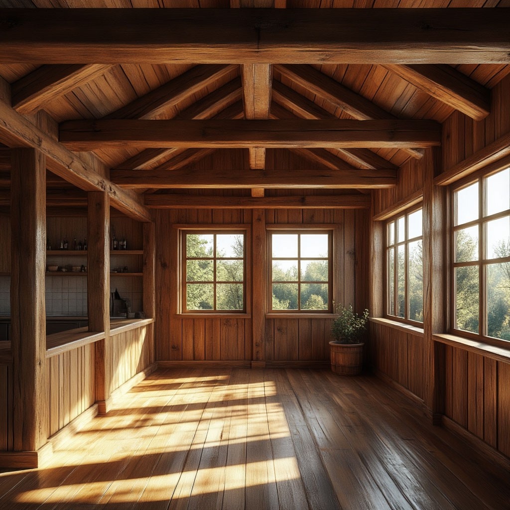 - Температура. В районах с резкими перепадами температур древесина может подвергаться деформации (усушке или набуханию). Выбор древесины с низким коэффициентом усадки (например, лиственница) поможет минимизировать эти эффекты.