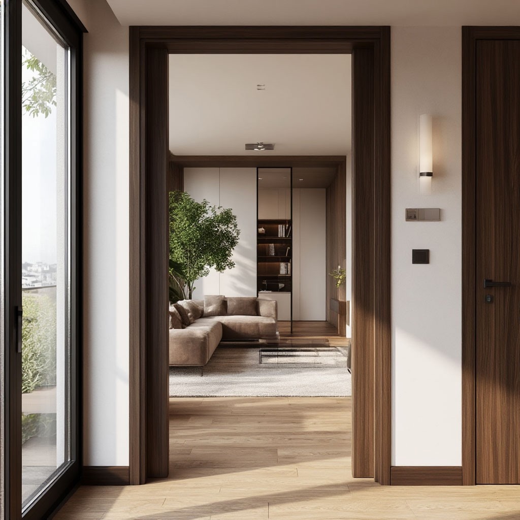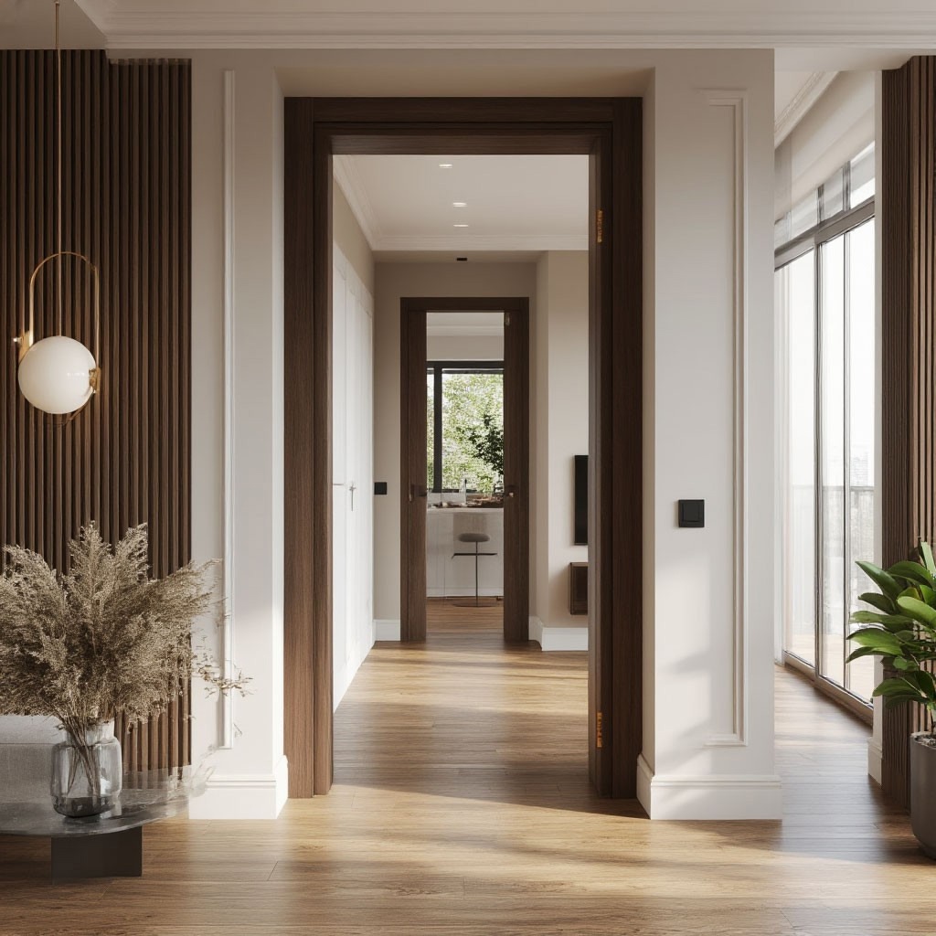 Наличники представляют собой рамки, которые обрамляют дверной проем, служат не только для эстетического оформления, но и для скрытия зазоров между дверной коробкой и стеной. При выборе наличников важно учитывать стиль интерьера.
