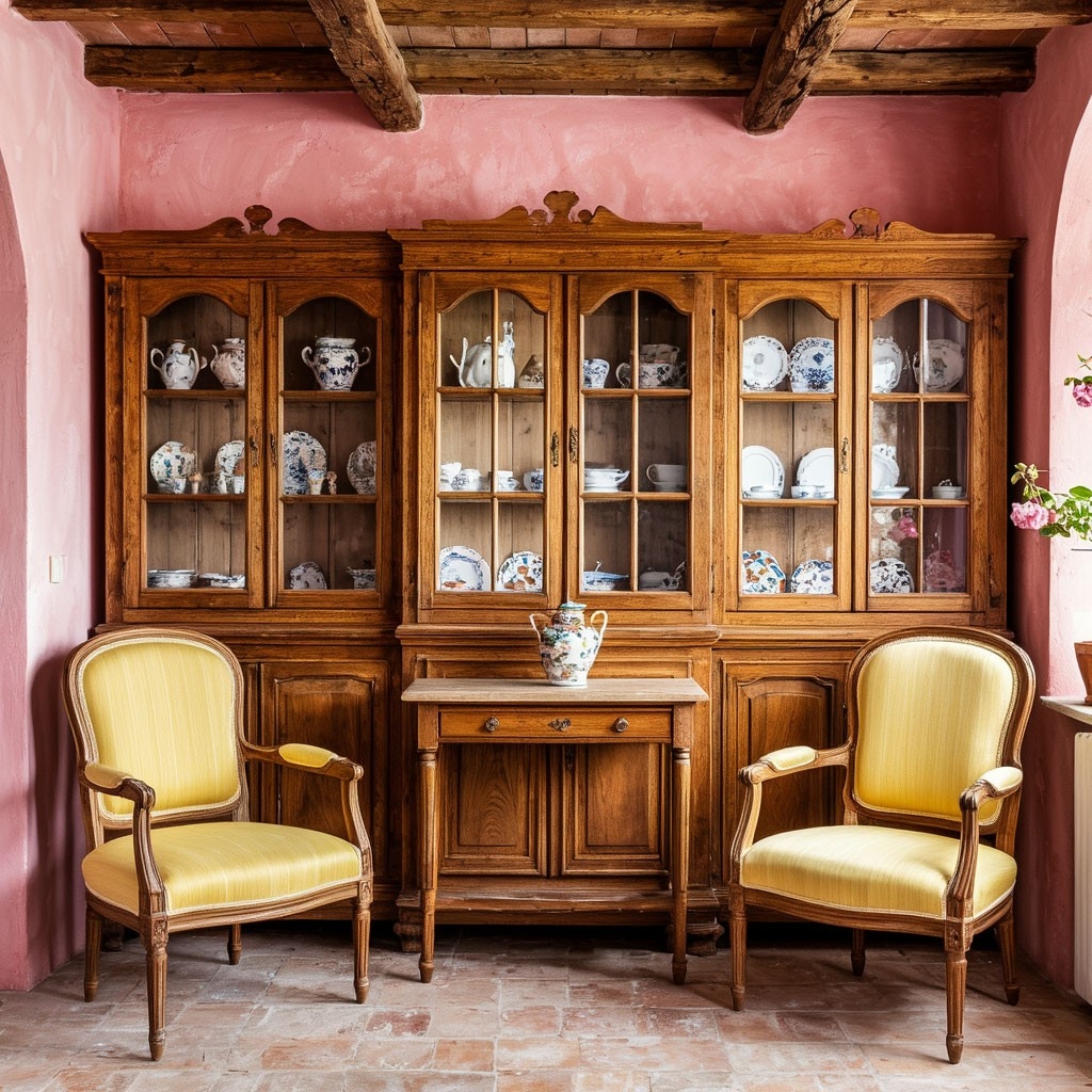 Сюда входят сосна с елью, пихта. Бесспорные фавориты для создания мебели в стиле Прованс. Их главное преимущество — податливость. Мягкая древесина идеально поддается механическому состариванию: на ней легко остаются вмятины от удара цепью или мешочка с гайками, она без усилий обрабатывается щеткой для браширования, обнажая красивую рельефную структуру. Кроме того, такая древесина, как губка, впитывает краски и морилки, что позволяет достичь сложных эффектов патинирования с глубоким проникновением пигмента.