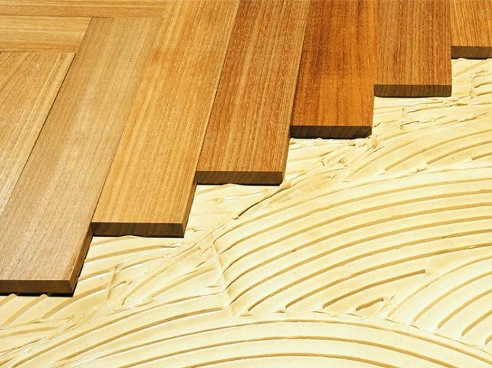 - Не стоит наносить клеевой состав сразу на большую площадь. Лучше готовить зону на пару плашек, чтобы клей оставался свежим, сохранял способность к сцеплению.