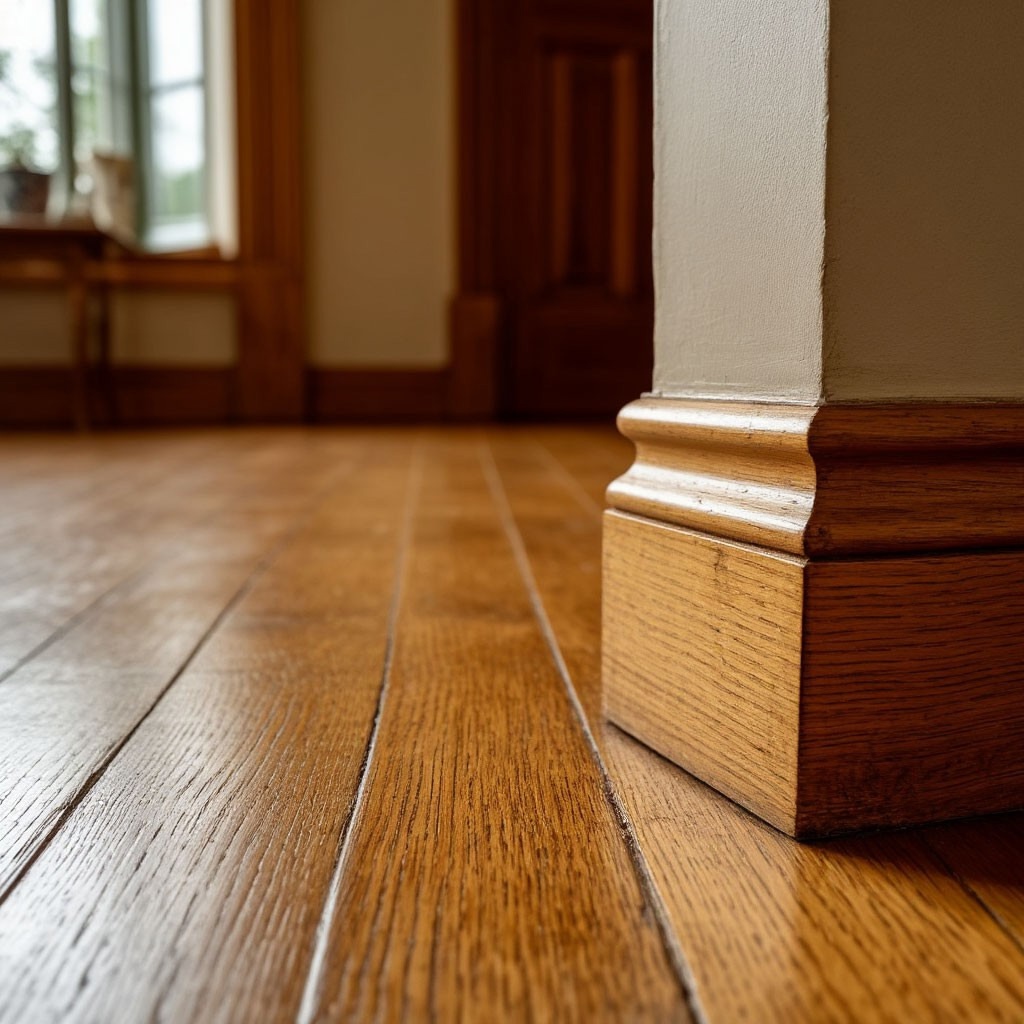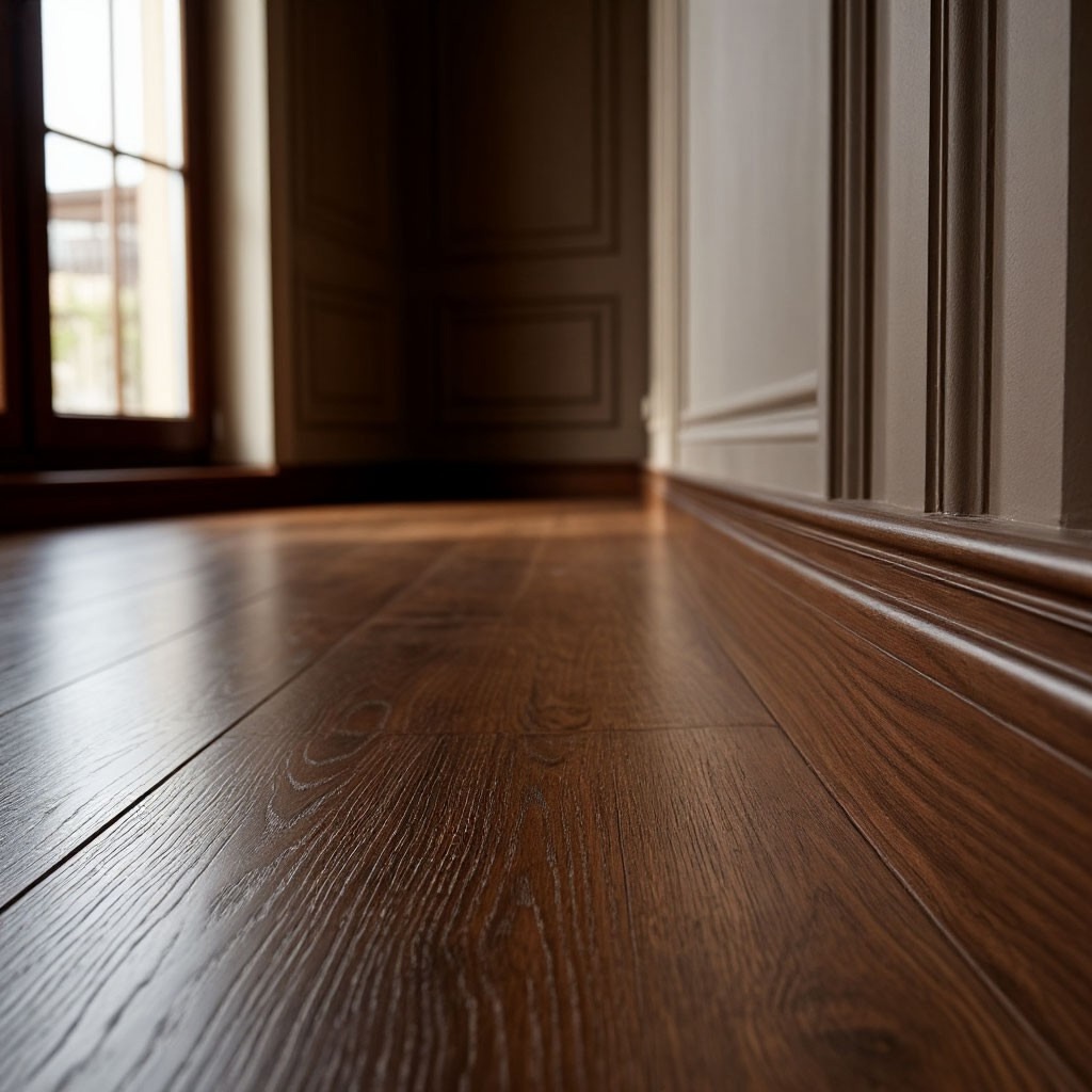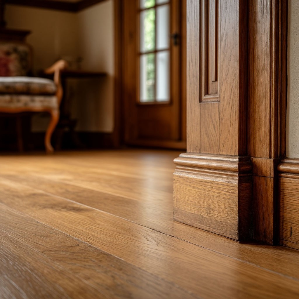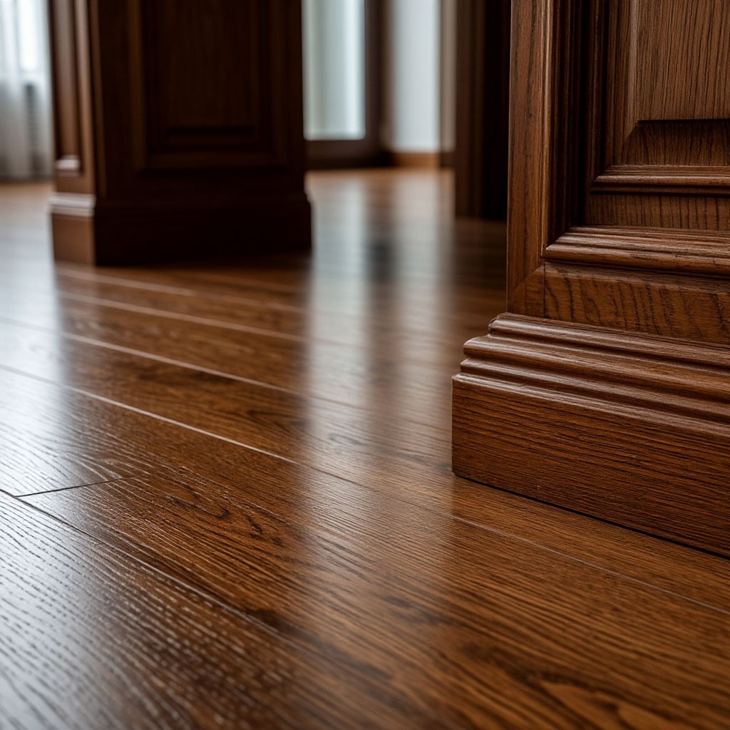 Для поддержания блеска, защиты поверхности периодически наносите специальный полироль для дерева. Это поможет сохранить естественный цвет, предотвратить выцветание. Следите за тем, чтобы влага не попадала на деревянные плинтусы, так как это может привести к их деформации.
