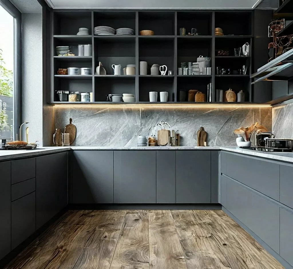 Подумайте о том, сколько уровней полок вам нужно. Например, если вы планируете хранить высокие кастрюли или бутылки, учтите это при выборе высоты полок. Определите оптимальную глубину полок. Обычно 30 см достаточно для хранения посуды и мелкой бытовой техники.