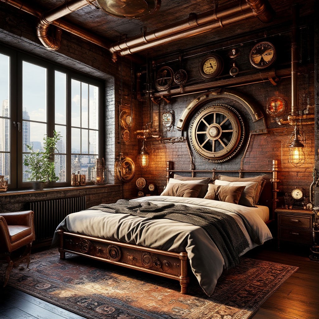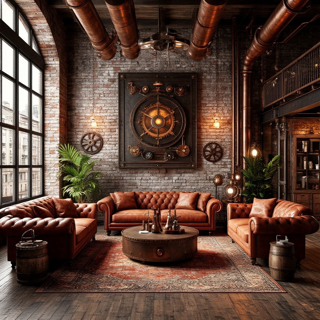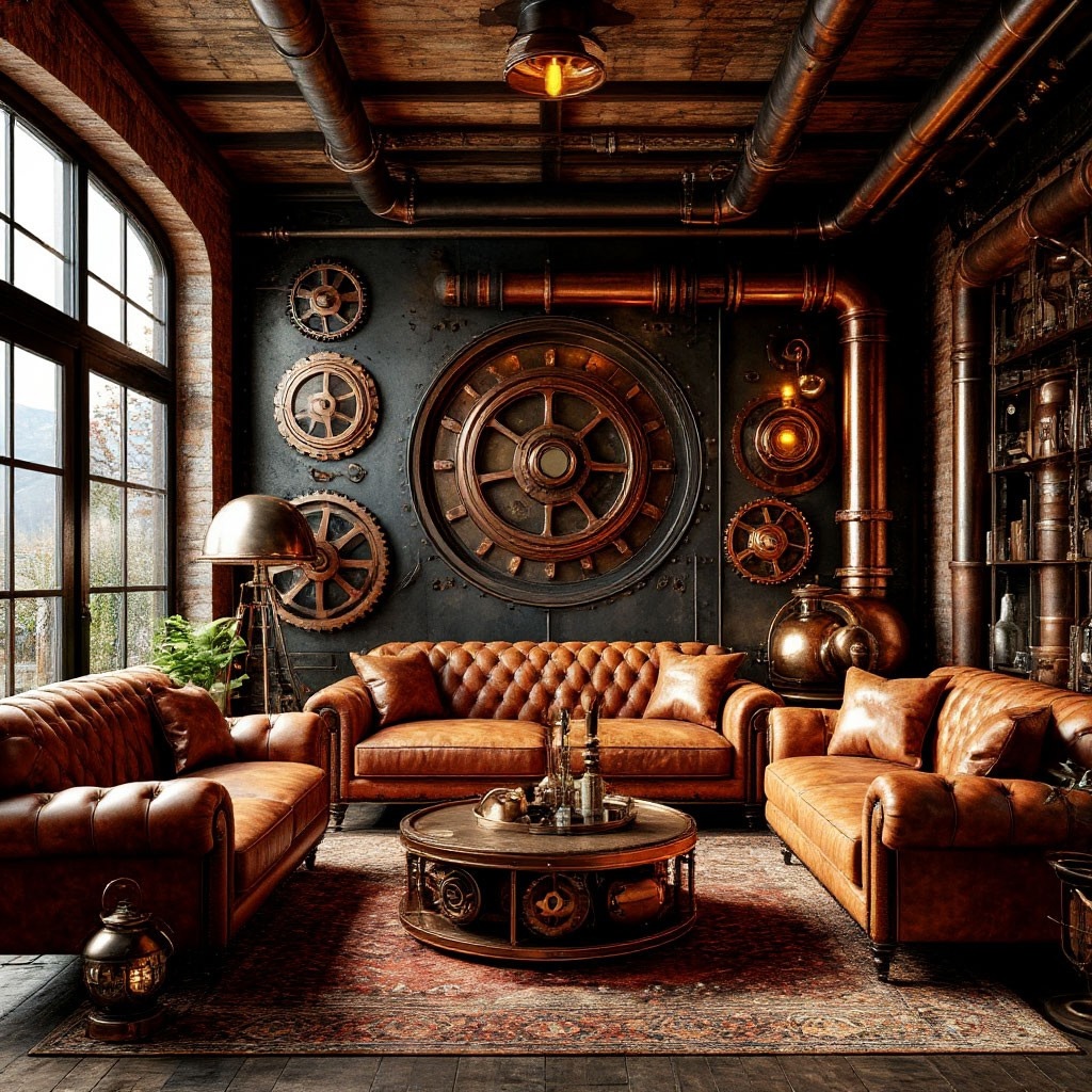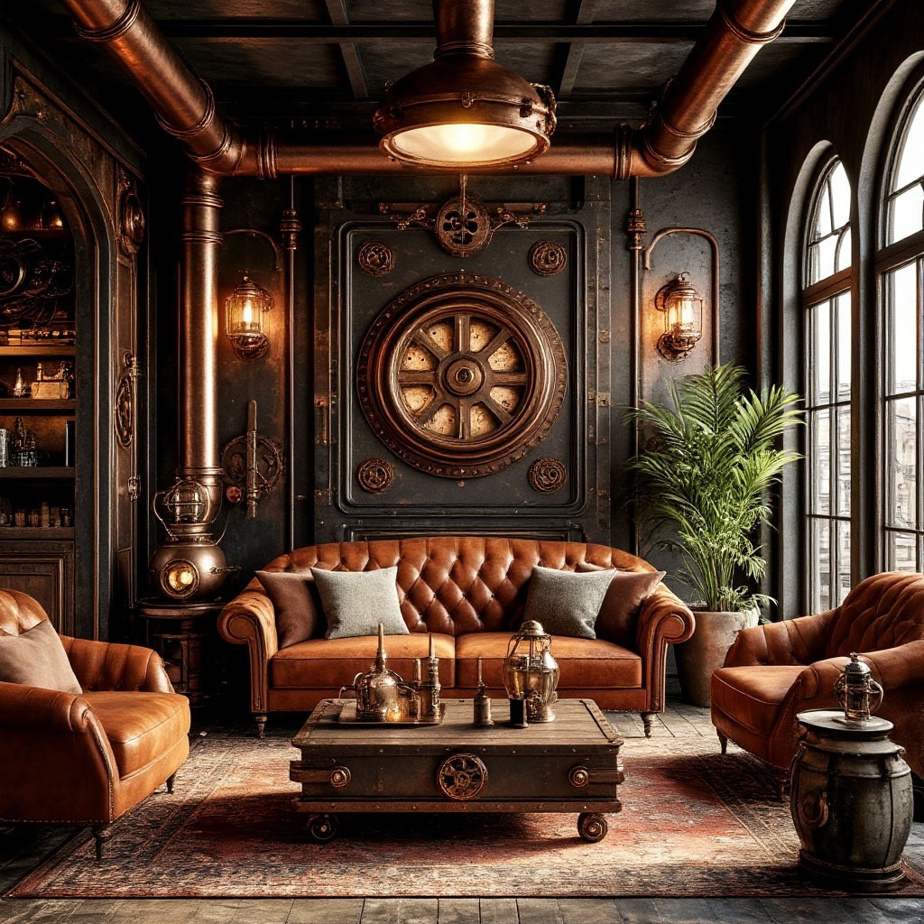 В целом, сочетание этих материалов создает уникальную атмосферу стимпанка, где каждый элемент стимпанк интерьера рассказывает историю, дополняет общую картину.